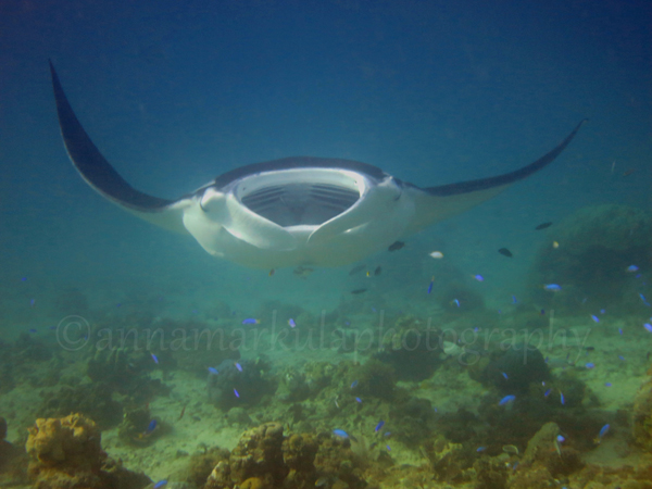 One of the tough choices you sometimes need to make while in the water is whether to put your head down and look closely for small creatures, or keep your eyes scanning the blue for something slightly larger! For me, both the tiniest of anemone shrimp and the overwhelming size of a manta ray bring a level of excitement that is hard to beat!